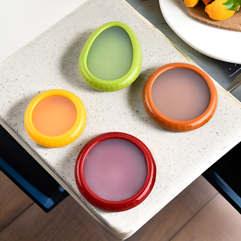 색상:레몬 보관용기(실리콘 필름), 아보카도 보관용기(실리콘 필름), 토마토 보관용기(실리콘 필름), 양파 보관용기(실리콘 필름), 4종 세트 OPP 포장(실리콘 필름)